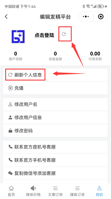 如果是微信小程序,對訂單有疑問,可以點擊小程序“我的”頁面,“刷新個人信息”即可(如下圖所示)。